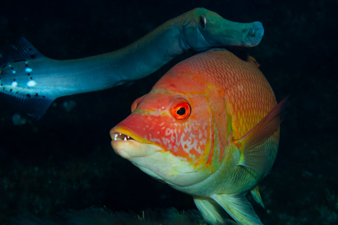 Title: Mutualismo entre pejeperro hembra y pejetrompeta